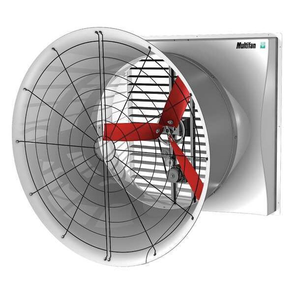 Agricultural Exhaust Fan, High Efficiency, Propeller Dia. (In.) 54, CFM @ 0.000-In. SP 32,000, CFM/Watt @ 0.000-In. SP 25.6, Fan RPM 535, Voltage 460, 60 Hz, 3 Phase, Full Load Amps 2.3, Watts 1250, HP 1-3/4, Motor RPM 1675, Motor Type Permanent Split Capacitor, Motor Enclosure Totally Enclosed Air Over, Motor Insulation Class F, Height (In.) 72-5/8, Width (In.) 72-5/8, Max. Depth (In.) 64-1/2, Opening Required H (In.) 64-7/8, Opening Required W (In.) 64-7/8, Flange Width (In.) 2