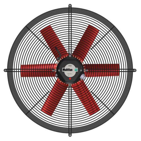 Corrosion-Resistant Industrial Fan, Blade Dia. 20 in, Stationary, Non-Oscillating, Variable Speeds, Voltage 240V AC, 1 Phase, CFM High 5500, Motor HP 1/3 hp, Motor RPM 1750, Operating Amps 2, Fan Mounting Location Fan Head Only, Fan Accessory Style Corrosion Resistant, Sound Level 55 dBA, Max. Ambient Temp. 140 Degrees F, Hz 60 Hz, Watts 410, Motor Type Permanent Split Capacitor, Drive Type Direct Drive, Outside Dia. 23 In., Height 23 in, Width 23 in, Max. Depth 14 In.