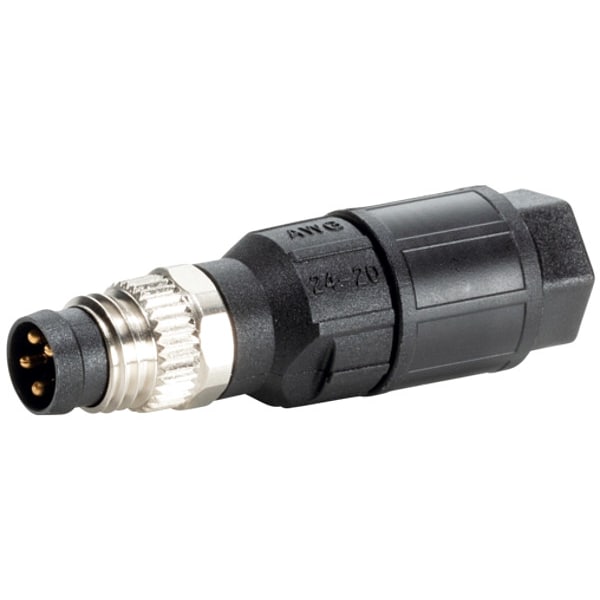 Circular Connector, Mounting Style Screw, Number of Poles 4, Coding A, Connection Type IDC, Thread Size M8, Voltage Rating 30V DC, Nominal Voltage 30V AC/VDC, Nominal Current 4 A, Locking Style Screw Connection, Housing Material PA, Connector Body Type Pin, Conductor Cross Section Size 0.5 sq mm, Cable Outside Diameter 5 mm, Connector Orientation Straight, Minimum Mating Cycles 100, Maximum Temperature 176 Degrees F, Minimum Operating Temperature -13 Degrees F, IP Rating IP65, IP67