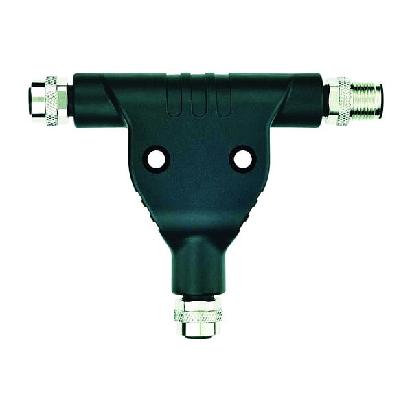 T-Coupler, Connector Style T-Style, Mounting Type Panel Mount, Convert From M12, Convert To (2) M12, Description Splitter/T Connector with 1 M12 Male Connector and 2 Female Connectors, Current Rating 16 A, Voltage Rating 63V DC, Connector Material TPU, Maximum Operating Temperature 194 Degrees F, Minimum Operating Temperature -22 Degrees F, IP Rating IP65, IP67, IP68, Overall Length 102 mm, Maximum Contact Resistance 100 megaohm, Application Industrial, Contact Material Brass