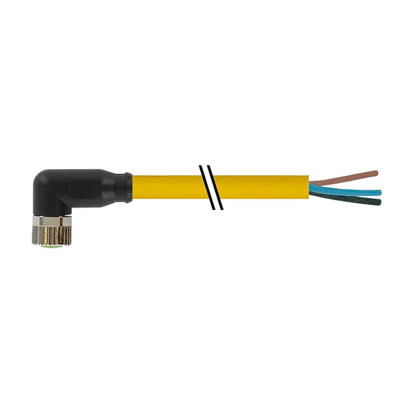 M8 female 90° with cable, PUR 3x0.25 ye UL/CSA+drag chain 5m