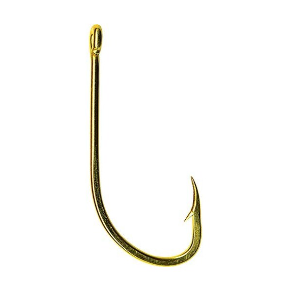 Classic Beak Hook, Size 4, Forged, Special Long Shank, Offset, Ringed Eye, 24Kt Gold, 100PK (Discontinued)