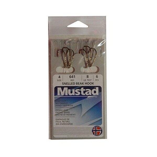 Mustad 64146 Snelled Beak Hook 92641 Bronze 4 Mustad 64146 Classic Snelled Hook Size 4, Forged, 1X Long Shank Baitholder, Down Eye, Bronze, 6 per Pack