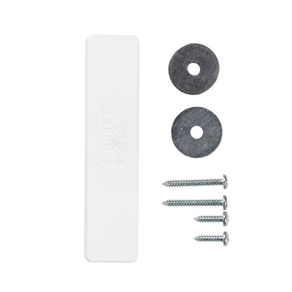The E L Mustee molded faucet block mounts to your laundry tub or utility sink for use with a clamp-on faucet and overhead supply lines. This accessory is made of white plastic.