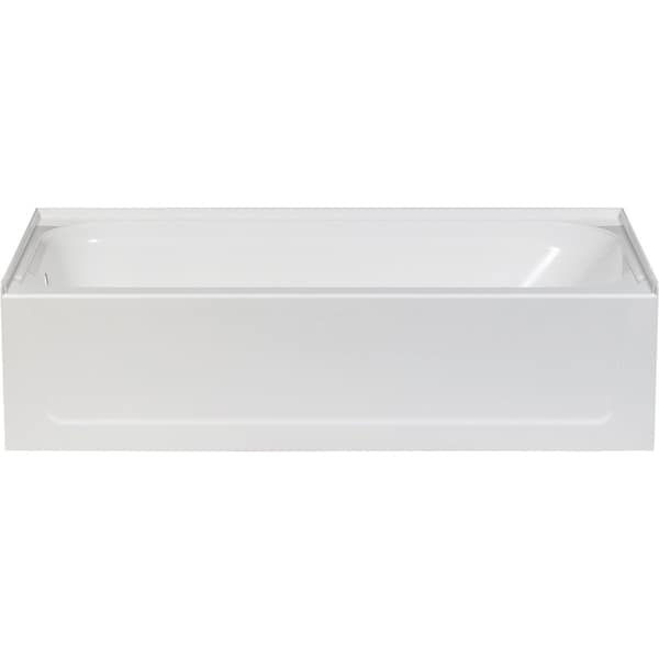 Elegant classic design with quality craftsmanship and deep colorfast finish. Precision molded using premium Varistone fiberglass. One-piece molded with matched metal molds for high strength and integral rigidity. Fits standard 30 In. x 60 In. alcove. Apron supported by twin molded fiberglass brackets for extra stability. Network of bottom and side structural support. 40 Degree lumbar slope for relaxed reclining while soaking. Easy to clean white semi-gloss finish with slip resistant bottom. 8-1/2 In. x 14-1/4 In. drain offset. Bathtub only - wall set not included.