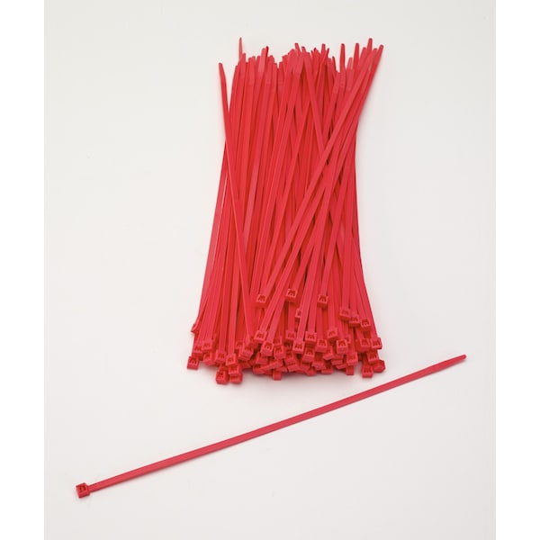 Cable Tie, 11 in L, Neon Red, Plastic, 2 PK
