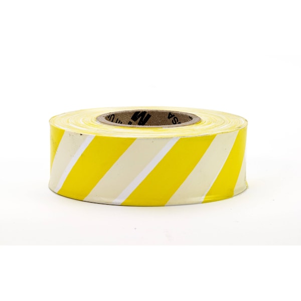 FLAGGING TAPE YELLOW WHITE STRIPE, 12PK
