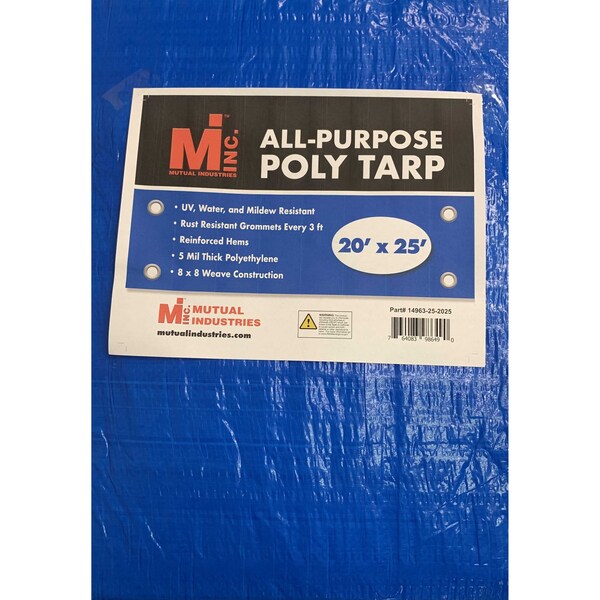 Tarp, 20 ft x 25 ft, 5 Mil, Blue, Polyethylene, UV Resistant, Mildew Resistant