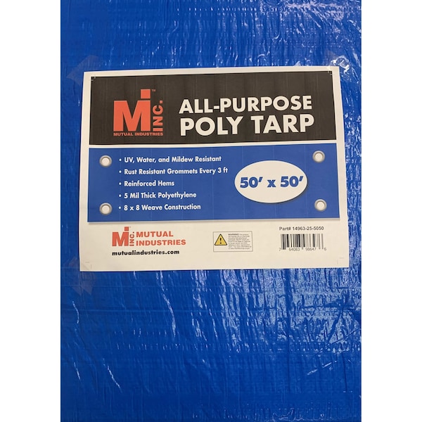 Tarp, 50 ft x 50 ft, 5 Mil, Blue, Polyethylene, UV Resistant, Mildew Resistant