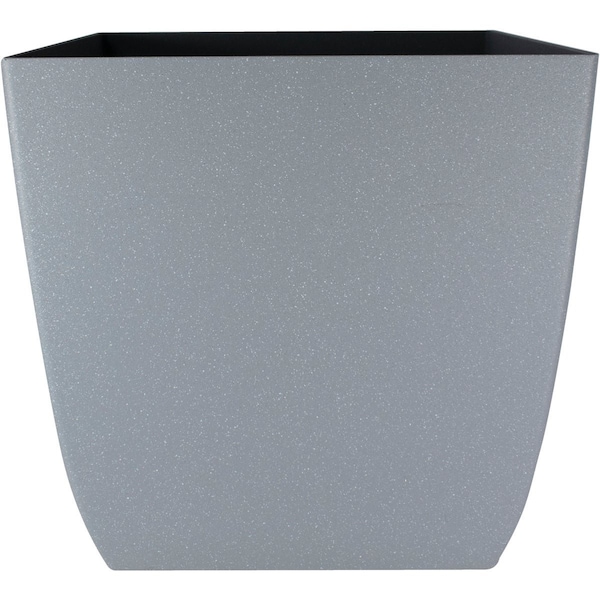 Durable Santa Fe square planter. Features self-watering stem for simple plant care and a removable drain plug for indoor or outdoor use. Sandy look and texture.