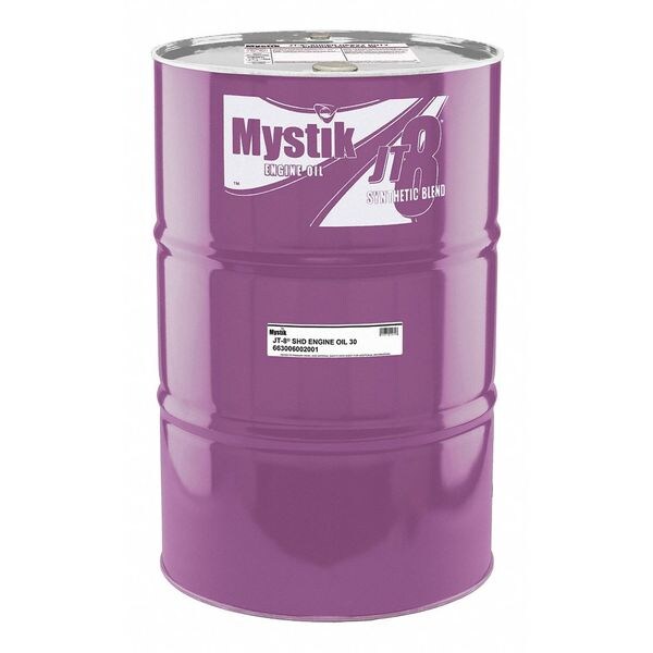 Diesel Engine Oil, Series Mystik JT-8, Container Size 55 gal, Standards API, Color Amber, Container Type Drum, Flash Point 432 Degrees F, ISO Viscosity Grade 100, Pour Point -38 Degrees F, Specific Gravity 0.870 at 60 Degrees F, Viscosity Index 143