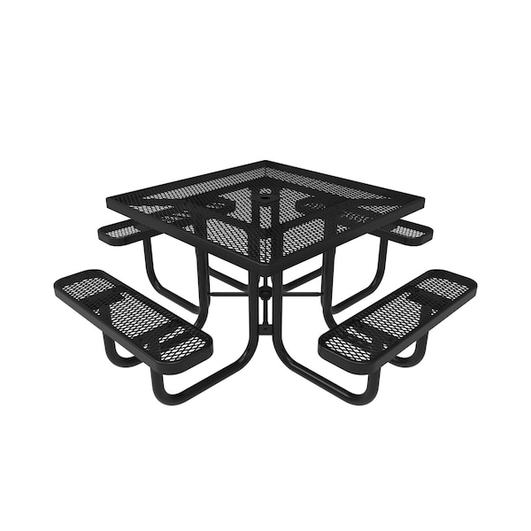 46in Square Portable Table, Expanded Metal, Textured Coating. Portable table for schools, playgrounds, parks, courtyards, and outdoor spaces. Seats 8. Thermoplastic coating on tops and seats, and powder coat on frames.