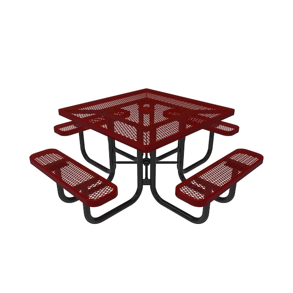 46in Square Portable Outdoor Table, Red, Seats 8, Expanded Metal, Textured Coating