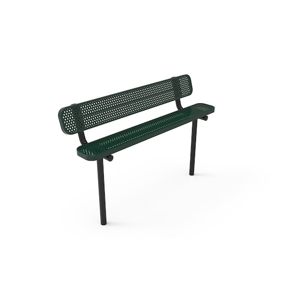 6ft Outdoor Bench with Back, Inground, Green, Punched Steel, Textured Coating