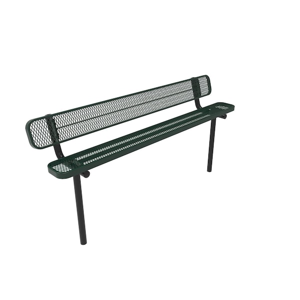 8ft Outdoor Bench with Back, Inground, Green, Expanded Metal, Textured Coating