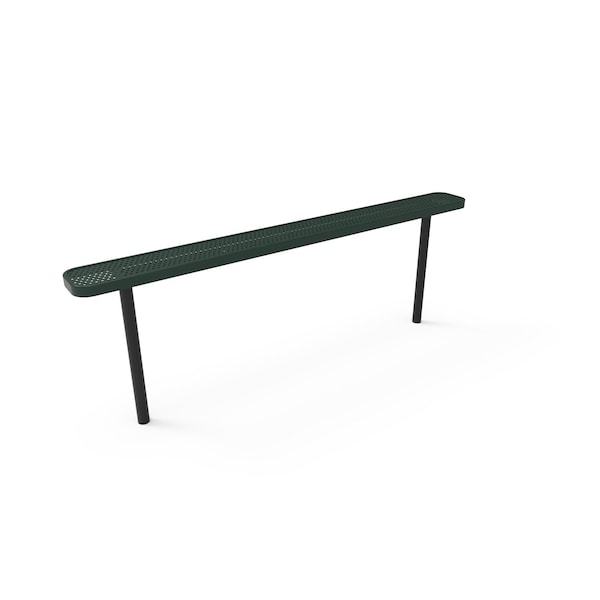 8ft Outdoor Bench without Back, Inground, Green, Punched Steel, Textured Coating