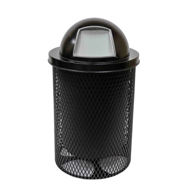 Trash Receptacle, Dome Lid, Liner, 32 Gal, Black, Expanded Metal, Textured Coating