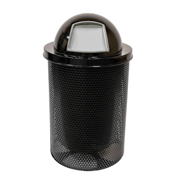 Trash Receptacle, Dome Lid, Liner, 32 Gal, Black, Punched Steel, Textured Coating