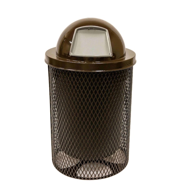 Trash Receptacle, Dome Lid, Liner, 32 Gal, Brown, Expanded Metal, Textured Coating