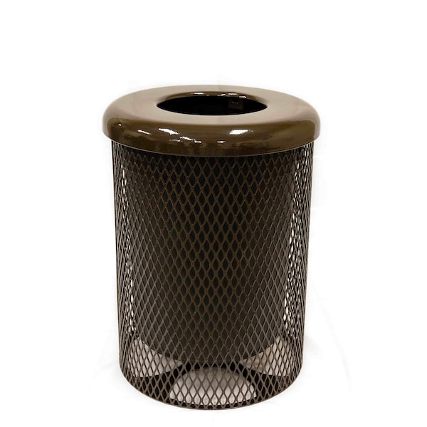 Trash Receptacle, Flat Lid, Liner, 32 Gal, Brown, Expanded Metal, Textured Coating