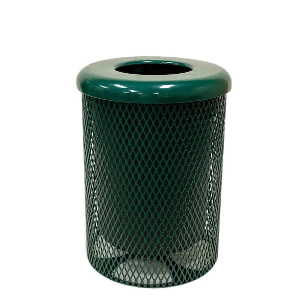 Trash Receptacle, Flat Lid, Liner, 32 Gal, Green, Expanded Metal, Textured Coating