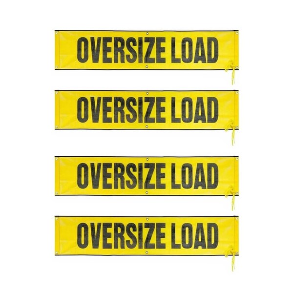 Pack Size: 4 Pack 18 in x 84 in Banner with high-strength brass grommets and 2 ropes. These versatile, mesh banners read OVERSIZE LOAD. They are made with high-strength UV-resistant PVC Mesh. Weight: 1. 3 lbs / 0. 6 kgs. per piece