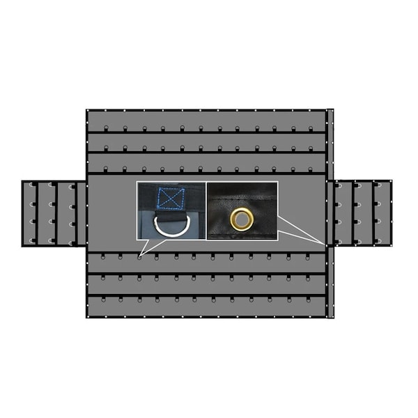 Dimensions: 24ft. x 30ft with 8 Ft Drop, 8ft x 8ft Tail ON BOTH ENDS and 8 in Rain Flaps Weight: 126 lbs Fabric: Made with Heavy Duty 18 Oz. Vinyl Seams: Heat-sealed seams make the tarps 100% waterproof Hems: All hems re-enforced with 2 in webbing and double stitched for extra strength Grommets: Tough solid toothed brass grommets clinched every 2 Feet D Rings: Three rows of D Rings box stitched with protection flaps so the hooks from bungee straps don't damage the tarp All D-Rings are galvanized with zinc plating. Cold Crack: -40 Degrees C Color: Black is our stock color. Thickness: 21 mil All tarps are marked with manufacturer information for traceability and identification.