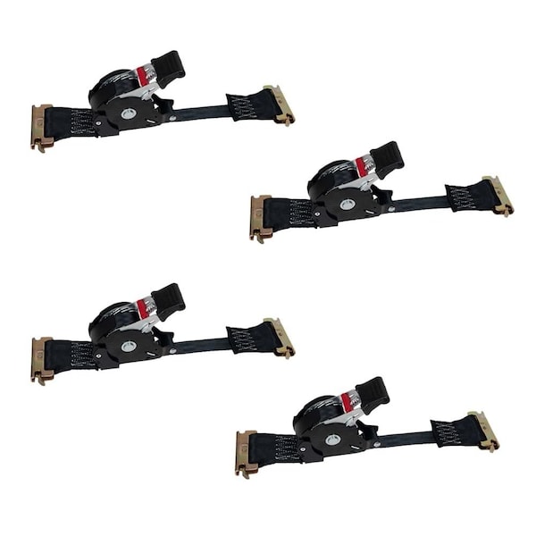1in x 12ft Retractable Ratchet Strap w/ E-Track Ends, 500 lbs WLL, 4PK
