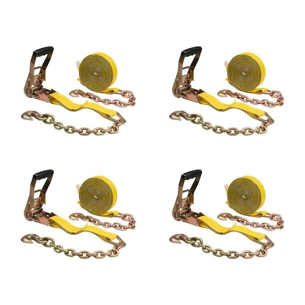 2 in. x 30 ft. Ratchet Strap with Chain Anchor, 4PK