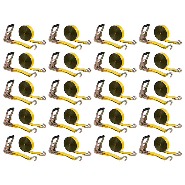 2 inx40 ft Yellow Ratchet Strap w/ J Hooks 3333 Lbs WLL Tie Down Cargo Strap, 20PK