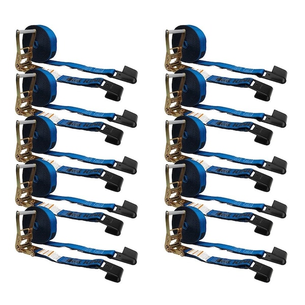 2in x 30ft Kinedyne Ratchet Strap w/ Flat Hook Wide Handle - Blue, 10PK