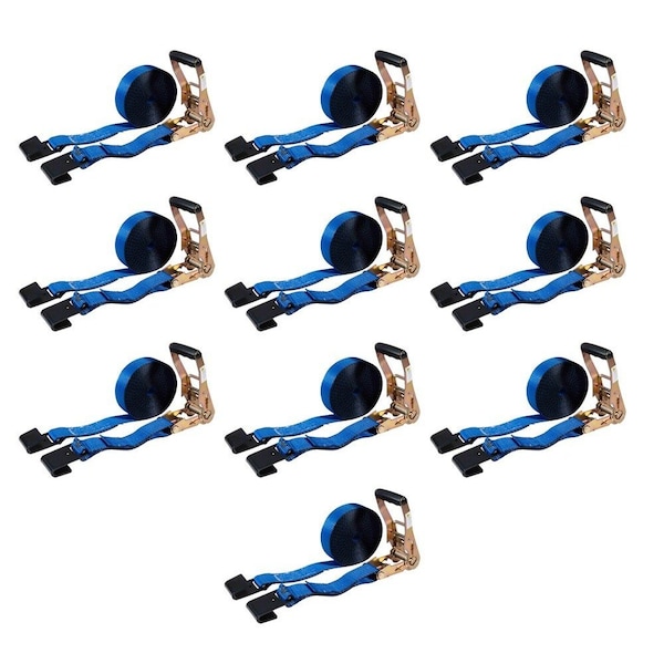 2in x 30ft Ratchet Straps w/flat hook, WLL 3,333 Trailer Tie Down - Blue, 10PK