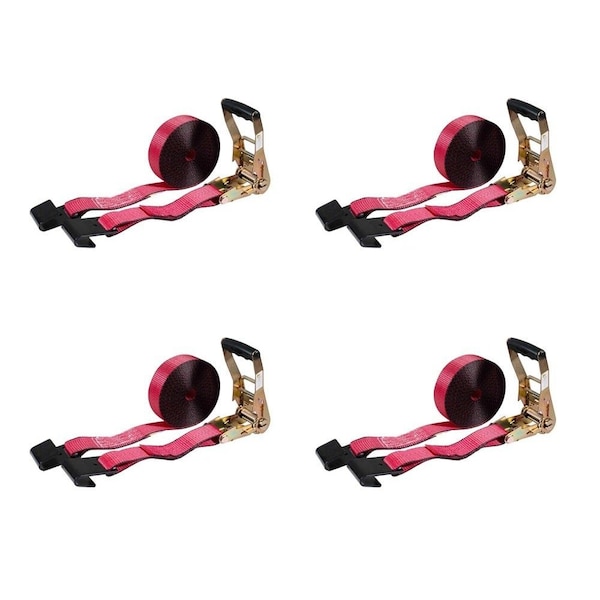 2in x 30ft Ratchet Tie-Down Straps Red w/ Flat Hook 10,000 Lbs Capacity, 4PK