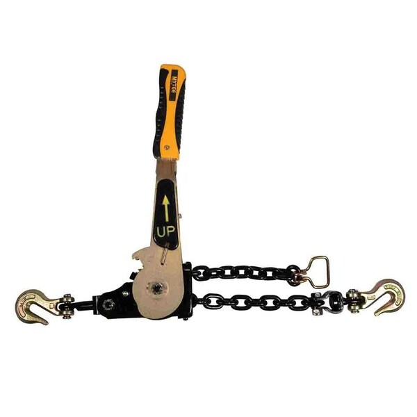 The Easy Ratcheting Chain Binder features a 12in Grade 100 chain equipped with a Grade 70,-3/8in swivel grab hook.Compatibility: Suitable for 3/8in Grade 70 or 1/2in Grade 43 chain sizes, offering versatility in your applications.The Easy Ratcheting Chain Binder simplifies the process of securing heavy machinery, vehicles, or bulky cargo onto your flatbed.The free-wheel function enables swift tensioning up to 12 inches, while the dual solid gears ensure an even distribution of the tensioning force.Operation: Its user-friendly design requires only attaching chain links to the hooks and pulling the lever to tighten, simplifying the operation.Efficiency: This tool can apply a significant pre-tensioning force, making it potent for all loading and unloading tasks. Its design and features streamline these processes, thereby saving both time and effort.Anti-Slip Handle: The extra-long, durable, anti-slip molded grip ratchet handle offers plenty of leverage, ensuring easy, comfortable operation and providing the necessary mechanical advantage for secure tensioning of binder chains.How to use Easy Binder Ratcheting Chain Load Binder?To start using the Easy Binder, latch your Grade 70 or 43 chains onto the swivel grab hooks. Start by opening the binder all the way. This unlocks the 12in G100 chain and lets you freely pull the chain you want to tighten.Then start ratcheting down the handle until the chains have little to no resistance. Finally, to make sure its not going anywhere, lift the release handle and push it down until its latched under the lock point.