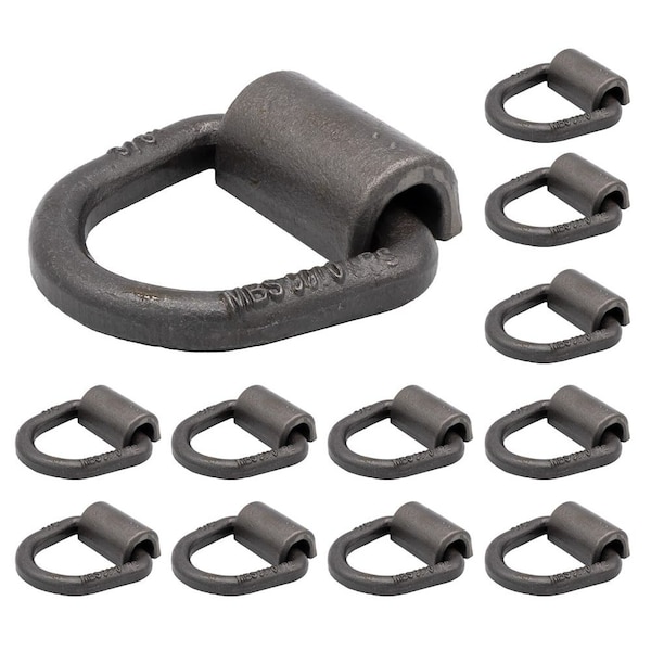 Pack Size: 12 Pack Size: 3/8 InchWorking Load Limit: 3000 lbs Breaking Strength: 9000 lbs Mount Type: Lashing Ring Weld On Material: Forged SteelHeavy Duty Forged Mounting RingThis D-Ring is designed to be welded on, creating a strong and durable tie-down point anywhere on your trailer. It also comes with a pre-forged clip to help aid in the welding process.The forged D-ring, with a diameter of 3/8 inch, is a dependable anchor point that caters to all your cargo tie-down requirements.The D-ring tie-down, known for its reliability, is a remarkably versatile and effective accessory for securing cargo. It is built from solid steel to withstand rugged usage and harsh conditions.Despite its relatively lightweight design, this D-ring possesses an impressive assembly break strength of 9,000 lbs and a working load limit of 3,000 lbs. It includes a weld-on clip and requires welding onto a metal surface for secure installation.