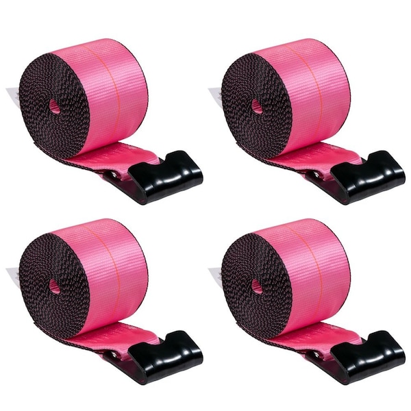 4 inx30 ft Pink Winch Straps with Flat Hooks 5400 lbs WLL Tie Down Straps, 4PK