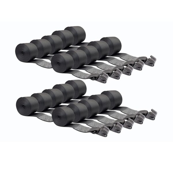 Pack Size: 20 Pack. Winch Strap - 4 in Webbing with Flat Hook Black Color Color: Black Webbing with White Stencilling. All winch straps are made from heavy duty webbing for minimum stretch and maximum wear resistance. These weather-resistant cargo straps provide the strength and durability demanded in flatbed operations. All winch straps are tagged with their working load limit to meet the DOT regulations and WSTDA recommended standards.Working Load Limit: 5,400-lbs.