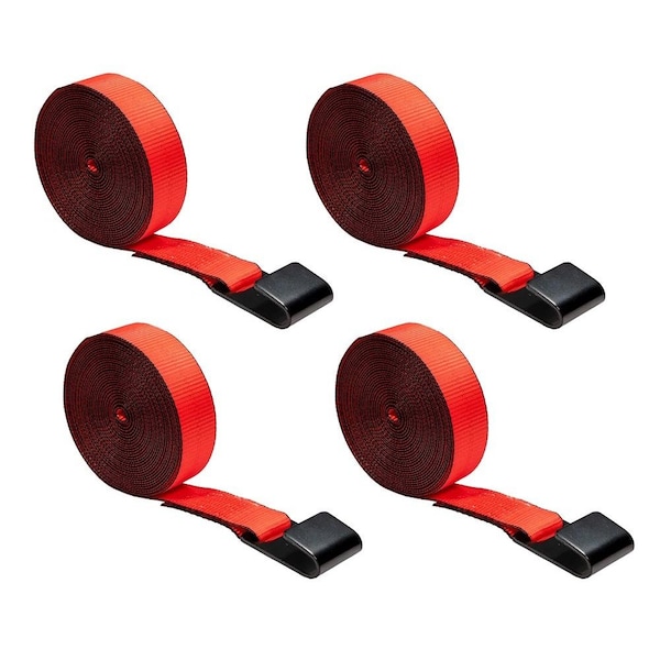 4Pcs 2 inx30 ft Heavy Duty Red Winch Straps Tie Down w/Flat Hook WLL# 3,333 lbs, 4PK
