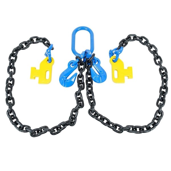Safely move and handle loading containers with our 5/8 in x 5ft Sea Shipping Container Loading Chain Bridle of G100. The bridle is meticulously engineered to safely lift shipping containers onto ships, trucks, or other transport vehicleswithout damage. Each part of the bridle, including oblong master links, grab hooks, container links, and container hooks, is for proper handling/movement of shipping containers during transportation or loading/unloading operations. Explore detailed specifications below. Key Components of Chain Bridle Chains: The bridle includes two chains of high strength that are designed to handle massive weight. The size is 5/8 in and the length is 5ft. The chains are connected to the oblong master link via the connector coupling. Oblong Master Link: The central link of 1-5/16 in connects the two chains and grab hooks together. It evenly distributes the weight across all the chains and is the focal point for lifting. Grab Hooks: Two 5/8 in grab hooks with connector couplings are connected to the oblong master link. It will latch on the shipping containers, ensuring secure attachment. These hooks will help adjust the length of the chain. If you have a loose chain anywhere, tighten it around the hooks. Container Hooks: We have added two yellow container hooks for secure attachment with the shipping containers bottom/top corner castings. It will efficiently fit into the castings, ensuring secure attachment and container transportation. Robust Construction: The entire loading chain bridle is constructed from G100 alloy steel for maximum load-bearing capacity.