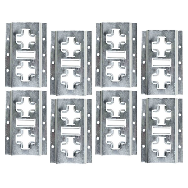 Pack Size: 8 Pack Series E Track Horizontal & Vertical Cross Style Patent Pending. Patent Pending design allows use of E-Track Straps in horizontal or vertical alignment. Made with 12 Gauge High Strength Steel Minimum Yield: 50,000 psi. Finish: Galvanized Length: 8 Inch Series E Track are commonly used in interior van trailers along with other E Track hardware such as Ratchet Straps, Cam Straps etc. **Straps sold seperatly