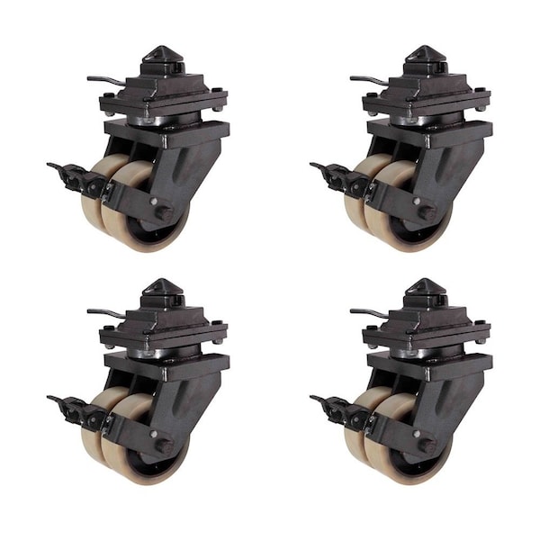 8in ISO Shipping Container Double Caster Wheels with Brakes 11000 lbs WLL, 4PK