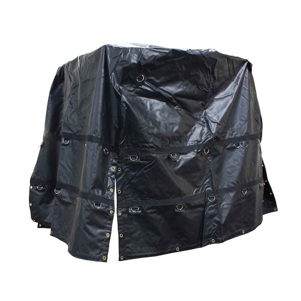 Dimensions: 7 Ft x 7 Ft x 7 FtHems:All hems re-enforced with 2in webbing and double stitched for extra strength. The 4 Corners of the coil bags are hemmed and have slits so that the binder chains and go through.Grommets: Tough solid toothed brass grommets clinched every 2 FTinDin Rings: Two rows of inDin Rings box stitched with protection flaps 2ft and 4ft from hemAll D-Rings are galvanized with zinc plating.Fabric: Made with Heavy Duty 18 Oz. vinylApplication: Used for hauling single steel coils on flatbed trailersBase Cloth: 1000 x 1000 Denier / 18ft x 18ftCold Crack: -40 Degrees CWeight: 36 lbsColor: Black is our stock color.All tarps are marked with manufacturer information for traceability and identification.