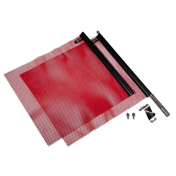 Includes: 2 Flags, 1 Spring Pole and 1 Mounting Bracket Durable Jersey Mesh Construction: The 18 in x 18 in safety flag is crafted from high-quality Jersey mesh material, ensuring durability and longevity. Its robust composition guarantees resilience against various weather conditions, making it a reliable companion for any journey. Stainless Steel Spring-Loaded Quick-Release Mechanism: Experience unparalleled convenience with the spring-loaded quick-release warning flag mechanism. Crafted from stainless steel, this mechanism allows for swift and effortless flag removal at the touch of a button. When your wide load reaches its destination, simply de-mount the flag with ease, streamlining the unloading process. Quintessential Red Color: The safety flag comes in a vibrant Red hue, a universally recognized color for warning and alert signals. This eye-catching color ensures that your wide load is unmistakably visible, alerting other drivers to exercise caution and maintain a safe distance. Benefits:- Enhanced Safety: The primary purpose of the 18x18 Jersey Mesh Safety Flag is to enhance safety during the transportation of wide loads. Effortless Operation: The quick-release mechanism simplifies the process of mounting and dismounting the flag, saving valuable time for drivers. This user-friendly feature makes the safety flag an essential tool for any professional involved in transporting oversized loads. Weather-Resistant Design: Built to withstand the elements, the Jersey mesh construction ensures that the safety flag remains effective in various weather conditions. Rain or shine, you can trust this product to maintain its integrity and functionality. Versatile Mounting Kit: The included mounting kit provides versatility in installation, allowing for easy attachment to a wide range of vehicles and load configurations. This adaptability makes the safety flag suitable for various transport applications.