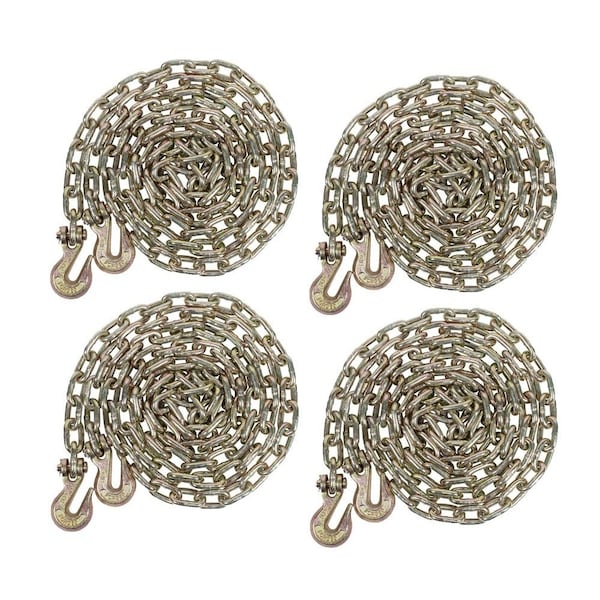 Pack Size: 4 PackGrade 70 transportation chain with grab hooks on each end.Working Load Limit: 4,700 lbs.Capacity: 18,800 lbs.Note:Ratings governed by the National Association of Chain ManufacturersNACM.Also called tow and binder chain, binding chain, boomer chain, load chain and coil chain.