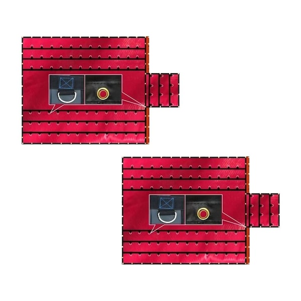 Pack Size: 2 PackDimensions: 20ft x 27ft with 6 Ft Drops, 6ft x 8ft Tail and 8in Rain FlapsWeight: 99 lbsFabric: Made with Heavy Duty 18 Oz vinylinDin Rings: Three rows of inDin Rings box stitched with protection flapsAll D-Rings are galvanized with zinc plating.Hems: All hems re-enforced with 2in webbing and double stitched for extra strengthGrommets: Tough solid toothed brass grommets clinched every 2 FTCold Crack: -40 Degrees CColor: RedThickness: 21 milAll tarps are marked with manufacturer information for traceability and identification.