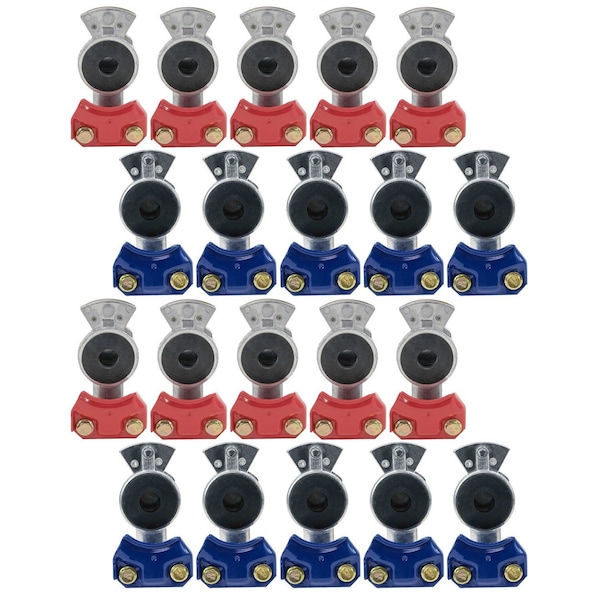 Pack SIze: 20 PackKit Includes:10 Pcs -Standard Aluminum Gladhands-Service- Blue 10 Pcs -Standard Aluminum Gladhands Emergency- RedSpecifications:Blue GladhandStandard Style Blue Standard gladhands, devoid of keyed stoppers and arms.Machined aluminum castings Powder-coated clamps on service and emergency stylesPermanent clamp screwsFull-face rubber sealsStainless steel filters where indicated Gladhands meet or exceed SAE J318