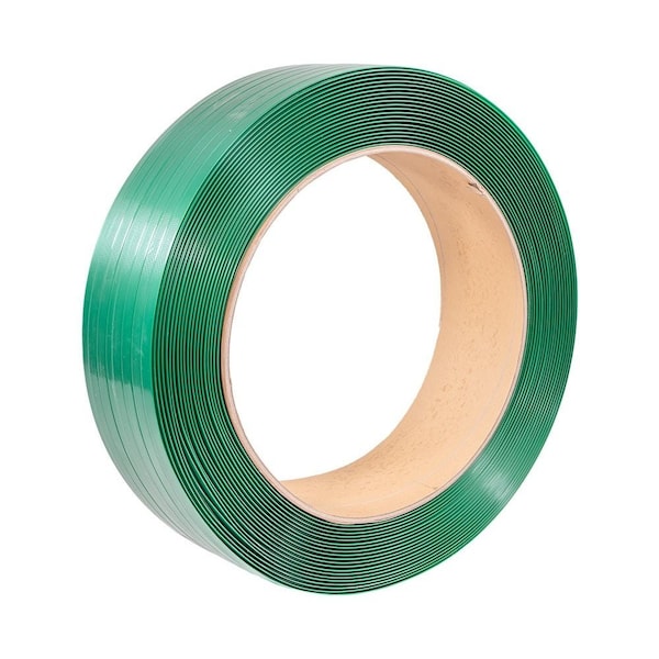 Solve and organize your packaging problems with Mytee Products new addition dubbed Green 3000ft x 3/4 in x 0. 040 in Polyester PET Strapping Roll for Packaging 1,800 lbs Break Strength. The highly durable strapping secures goods and pallet contents from slippage or shifting, providing relentless commitment during transportation. Utilize this perfect banding roll for bundling up multiple items together, including medium-sized boxes, pallets, wood, and more. The lightweight design is easier to use and carry, providing more flexibility than steel and less elongation than polypropylene material. Learn more about this environmentally friendly strap roll below:- Measurement Description: The length, width, and thickness of our banding roll are as follows; 3,000 feet, 3/4-inch width, and 0. 040-inch thickness. It has a core size of 16 inches x 6 inches, enabling you to cover high-volume applications while reducing the frequency of roll changes. We have other sizes too for you, like 1/2 in width with 780 lbs breaking strength and 0. 025 in thickness, 3/4 in with 2,500 lbs breaking strength and 0. 050 in thickness, and 5/8 in width with 1,400 lbs breaking strength and; 0. 035 in thickness. Strapping Material: Our strapping roll is engineered from Polyethylene Terephthalate PET material which is composed of high-quality polyester fibers, providing resistance to bending. It will withstand substantial loads with manual applications. It has a working load limit of 1,500 lbs and a breaking strength of 1,800 lbs with low permeability, restricting water flow. Thus, making it perfect for different environmental conditions. It has a textured embossed finish to provide a better grip. AAR Approved: Our UV and water resistant rolls are hand grade manual applications and have the American Association of Railroads AAR certification. Thus, making it suitable for packing medium-sized boxes/packages, binding together newspapers, pipe, lumber, concrete blocks, warehouse packaging of transportation companies, and more.