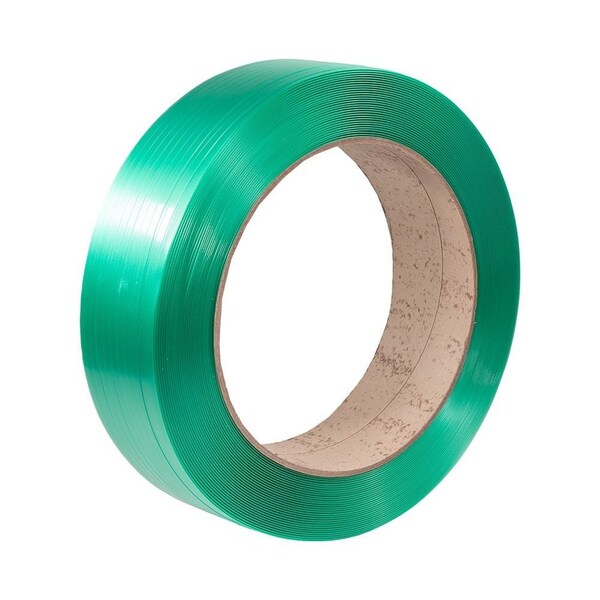 Our introduces Green 5800ft x 1/2 in x 0. 025 in Polyester PET Strapping Roll for Packaging - 780 lbs Break Strength to solve packaging problems. The highly durable strapping will secure your goods or pallet contents, maintaining relentless commitment during transportation. You can also utilize it to bundle up multiple items together. Its light and easier to use, ensuring more flexibility than steel and less elongation than polypropylene. Learn more about this environmentally friendly strap roll below:- Size Details: Our banding roll is available in a length of 5800 feet, 1/2-inch width, and 0. 025-inch thickness. It has a core size of 16 inches x 6 inches, enabling you to cover high-volume applications while reducing the frequency of roll changes. Our rolls are available in other sizes too, like 3/4 in with 2,500 lbs breaking strength and 0. 050 in thickness, 3/4 in with 1,800 lbs breaking strength and 0. 040 in thickness, and 5/8 in width with 1,400 lbs breaking strength and 0. 035 in thickness. Polyester Material Construction: We have constructed our strapping roll from Polyethylene Terephthalate PET material composed of high-quality polyester fibers, providing resistance to bending. Its designed to withstand lighter loads with manual applications. Our roll has a working load limit of 650 lbs and a breaking strength of 780 lbs with low permeability, restricting water flow. It has a textured embossed finish to provide a better grip. Certified Polyester Strapping Rolls: Our UV and water resistant rolls are hand grade and have been approved by the American Association of Railroads AAR. Thus, making it suitable for packing medium-sized boxes/packages, binding together newspapers, pipe, lumber, concrete blocks, warehouse packaging of transportation companies, and more. Thus, preventing slippage and falling during transportation or even at the warehouse. Easy-to-Use and Handle: Our box strapping roll is easier to handle on horizontal and vertical surfaces; you can easily apply and remove it using manual tools, like tensioners, dispensers, sealers, or cutters.