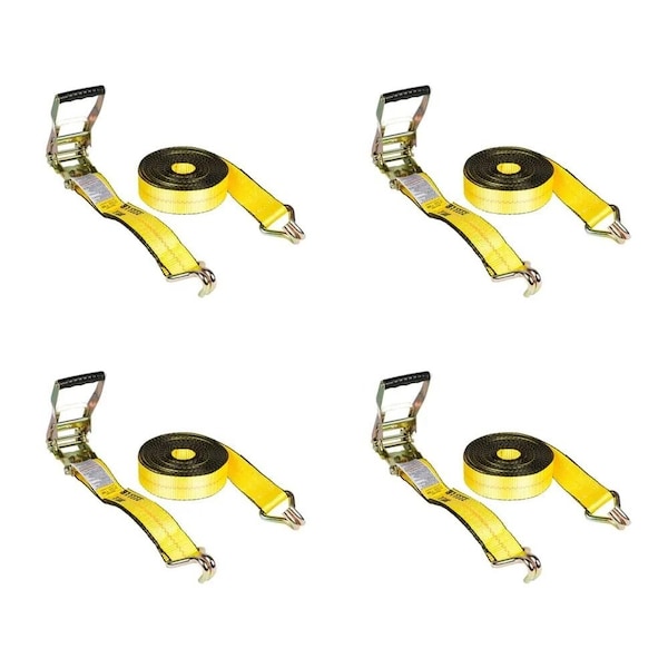 Ratchet Straps 2 inx50 ft w/Double J Hooks 10,000 lbs. BS, Tie Down Strap, 4PK