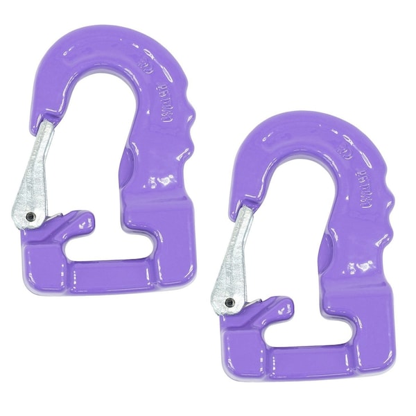 Pack Size: 2 Pack Round Sling Hooks Color: Purple Working Load Limits: 1 Ton Easily Attach to a Round or Nylon Sling Hooks Are Color Coded For Easy Identification Hook Colors Match Round Slings Working Load Limits The Latched Sides Are Made For Instant Attachment Flat End For Smooth Sling Connection